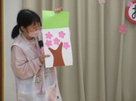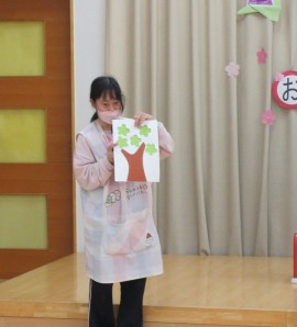 保育士が持っている桜の花の色が緑から・・・ |