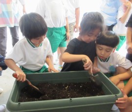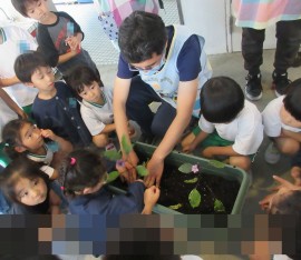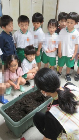 らいおん組は、ナスとピーマンを植える準備をしています。