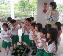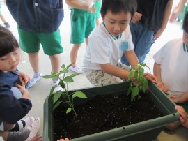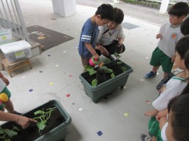 野菜の苗植えました(年中・年長)