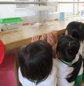 うさぎ組のお部屋にとんぼが迷い込んでいました。