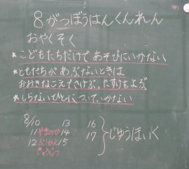 職員と子どもで約束をしました。お約束を守ってお過ごし下さい。 |