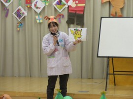 ゆきだるまサンタさんが来て、いろいろな動物に素敵なプレゼントをしてくれました。 |
