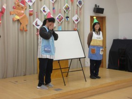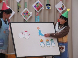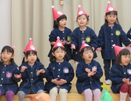 年少りすうさぎ組は、「きらきら星のサンタ」の歌と手遊びを披露しました。 |