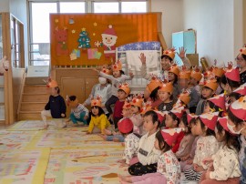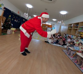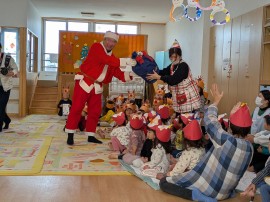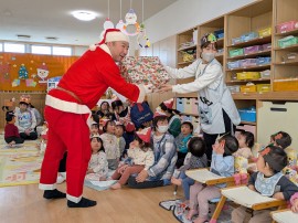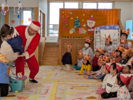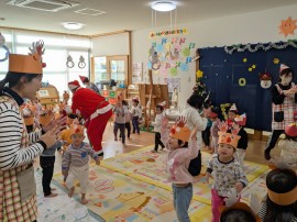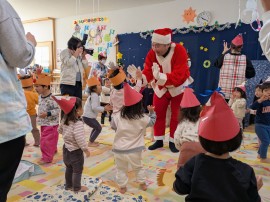 子どもたちの楽しいクリスマスの歌声に誘われて、サンタさんが来てくれました! |