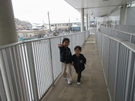 年長児と年少児、年中児同士で手を繋いで各部屋を移動します。