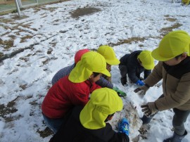 保育室の近くに水をはっていたものがきれいに凍っていました。 |