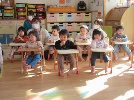 0歳児ひよこ組も真剣に観ています!(^^)! |