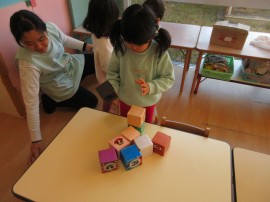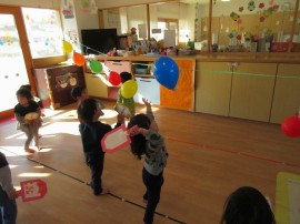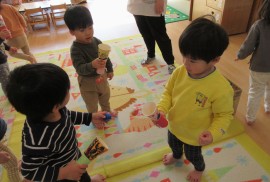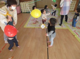 1歳児あひる組の子も「ポーン、ポーン」として楽しそうです(^^)/ |