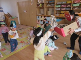 子どもたちもお面をかぶりました。 |