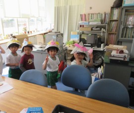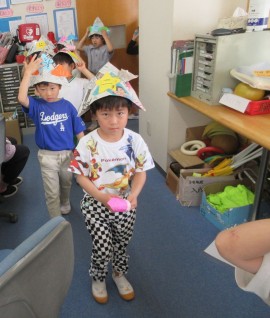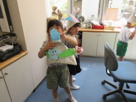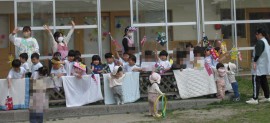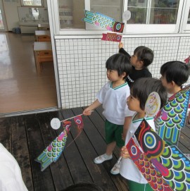 「先生、見て~」とこどもたちは作った鯉のぼりを見せてくれましたよ。 |