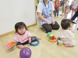 0歳児ひよこ組も近くで遊んでいましたよ♡ |