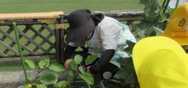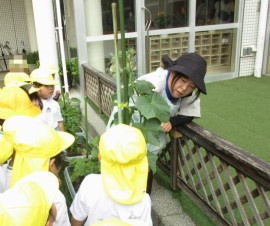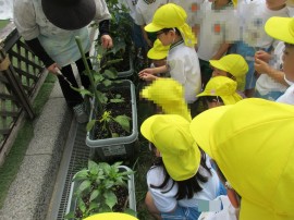 大事ななすを保育士が収穫します。 |