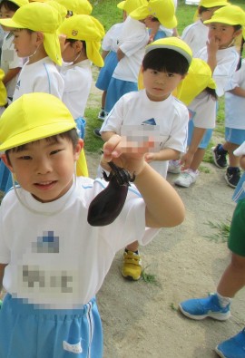 今度は年中こあら組の!(^^)!なすも収穫できましたよ!(^^)! |