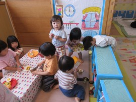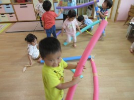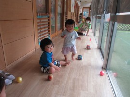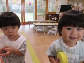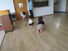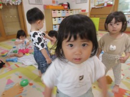 0歳児ひよこぐみのおともだちが覗いていますよ・・・