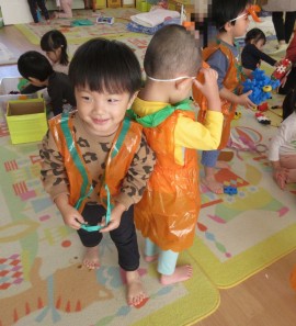 服を着ている子もいれば、好きなおもちゃで遊んでいる子もいますよ(^^♪ |