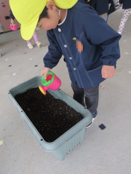 12/5(金)さやえんどうの種をまきました(年中児)
