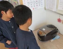 まだかな、まだかなと時々子どもが炊飯器の時間を気にしています。 |