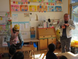 こどもたちは触ったり、においをかいだり、温かさを感じたりしました。 |