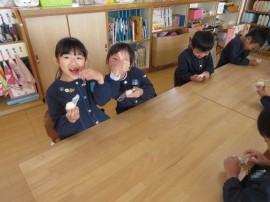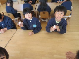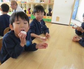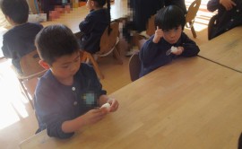 それぞれの食べ方があって、一口で食べる子、もったいないから少しずつ食べる子などいろいろなパターンがありましたよ。 |