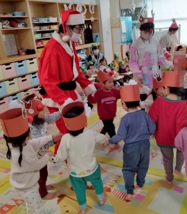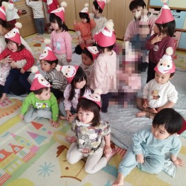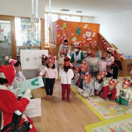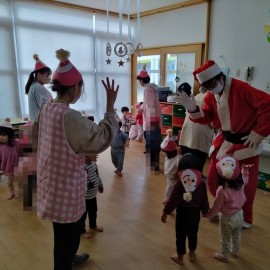 2歳児ぺんぎん組はサンタさんに興味津々!! |