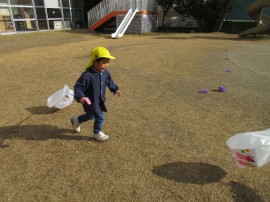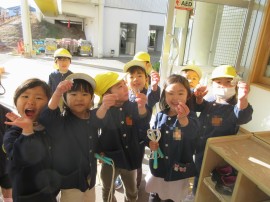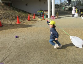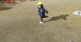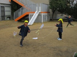 同日の午前、凧をもって年少組が園庭にでてきましたよ♪ |