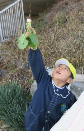 カブ収穫して、保育園で食べたよ(^^)/