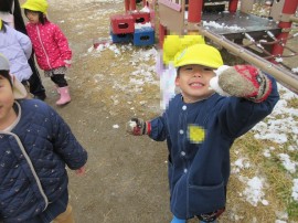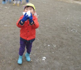 雪を丸めたり、雪の塊を触ったり・・・ |