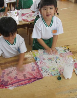 布やエプロンなど普段遊んでいるものを洗っています。 |