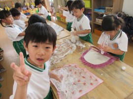 せっけんを削ってペットボトルに入れて、泡立てていますよ(^^♪ |