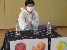 続いては手前に描いた果物の色と一緒に変化する魔法の水です。 |
