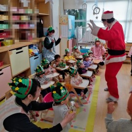 2歳児ぺんぎん組はサンタさんに興味津々!! |