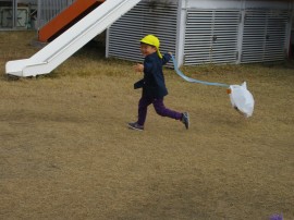 同日の午前、凧をもって年少組が園庭にでてきましたよ♪ |
