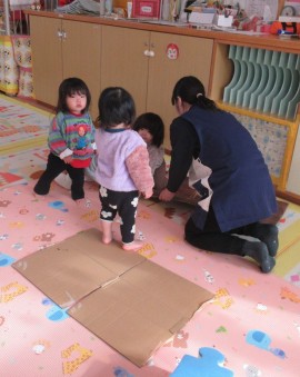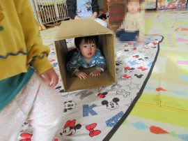 段ボールなどを使って中に入って遊んでいましたよ(^^♪ |