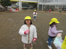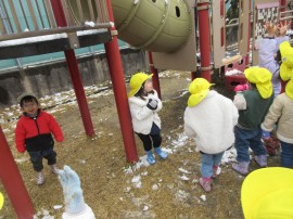 雪を丸めたり、雪の塊を触ったり・・・ |