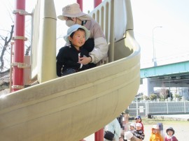 滑り台で遊んだよ(2歳児ぺんぎん組)