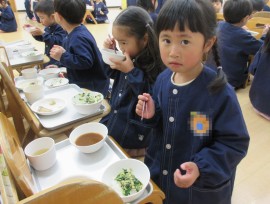 異年齢で初めて食べています!(^^)! |