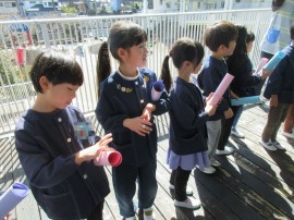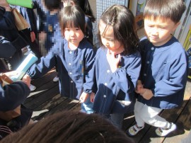 渡す在園児も緊張!?してる? |